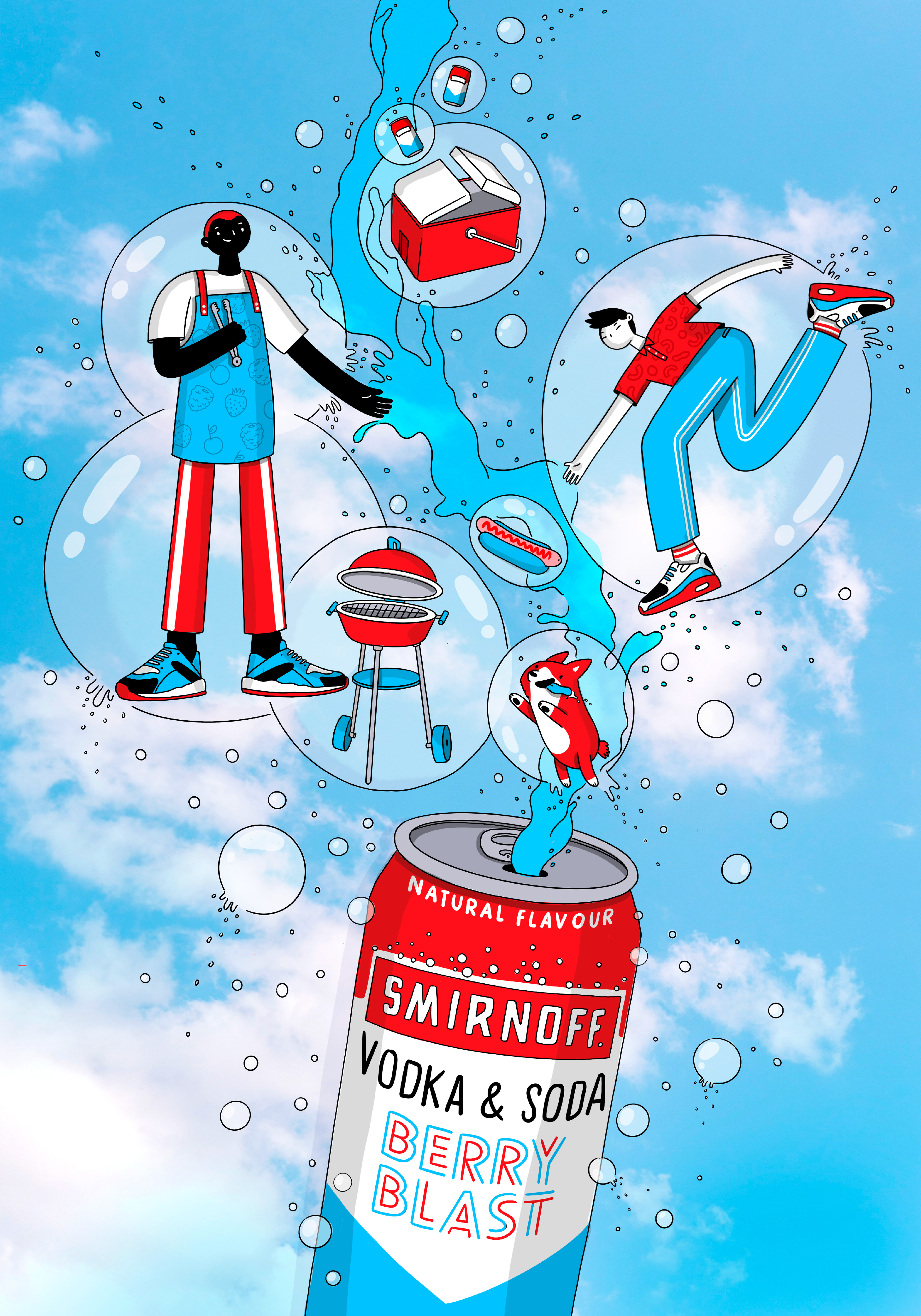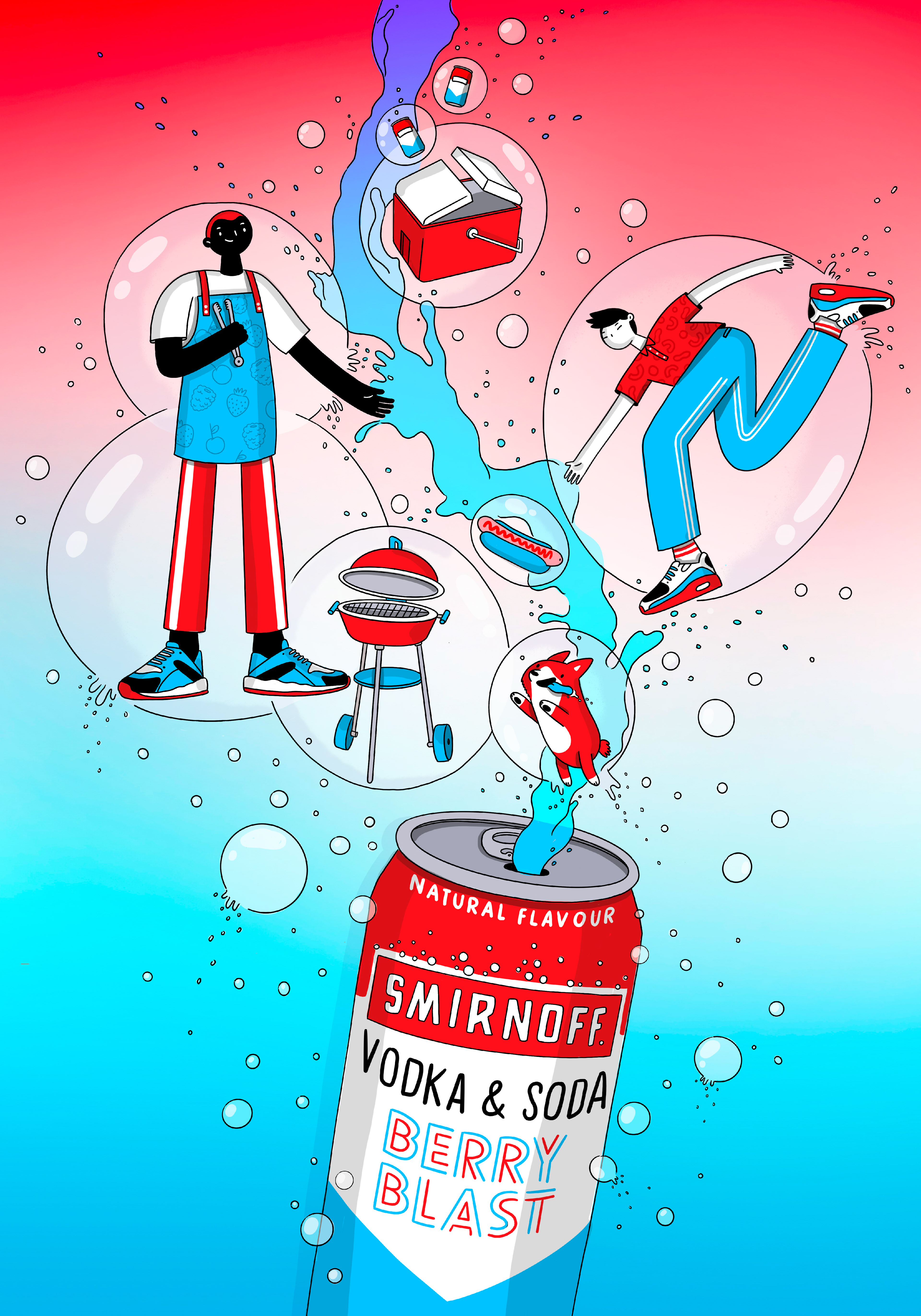 Poster design and illustration proposal for Smirnoff Berry Blast. Developed for Stato.tv
